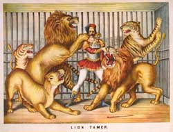 Lion tamer, in lithograph by Gibson & Co., 1873. |