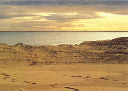 The tranquil sea reflects a pale, mid-afternoon sun and the only sound comes from seabirds as a breeze ripples the sand on the dunes that stretch south towards Balmedie village.