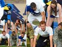 英國哈里王子在美國空軍學院訪問時童心大發(fā),貴為王子的他跪在地上大玩疊羅漢。