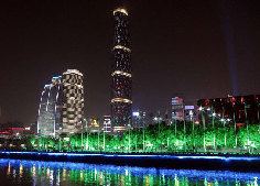 Buildings along the Pearl River have been decorated with various lights displaying images to light up Guangzhou, the host city of the 16th Asian Games, Nov 7, 2010.