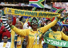 South African fans cheer before the 2010 World Cup opening match between Mexico and South Africa at Soccer City stadium in Johannesburg June 11, 2010.