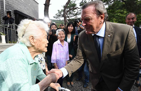Gerhard Schroder, former chancellor of Germany, on Monday visited four comfort women who were forced into sexual slavery by the Imperial Japanese Army during World War II and expressed his concerns on Japan, reflecting upon history, in South Korea’s Gwangju City.