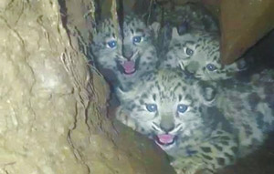 Four villagers in Shiqu county in Southwest China's Sichuan province found three snow leopard cubs in a cave in the Luoxu White-lipped Deer Nature Reserve on Friday.