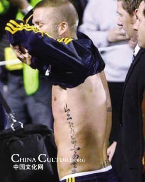 龍 again! This time, it is the tattoo’s turn. Chinese character tattoos are commonly found on numerous dignitaries from the west. Kobe Bryant and David Beckham, who repeatedly stole the limelight during the Beijing Olympics, are the two most famous men to have followed the fashion trends. Being in awe of China’s profound civilization and its stunning economic growth, most foreigners chose to tattoo the character 龍 , featuring their indelible impression of the emerging nation.
