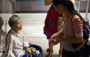 Sitting near the exit of People's Square station, one of Shanghai's busiest subway stations, 85-year-old Yang Guoying focuses on her handiwork - tying two Michelia alba (commonly known as ylang-ylang or cempaka, or miangui flower in Chinese) blossoms together with thin wires.