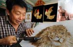 Folk artist paints with straw in north China's Shanxi province.