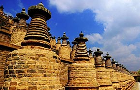 Aerial view of 108 ancient pagodas in Qingtongxia, NW China