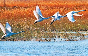 The Yellow River Delta Nature Reserve in Shandong province is blessed with various species all year round, an ideal habitat for migratory birds from inner lands to the Pacific.