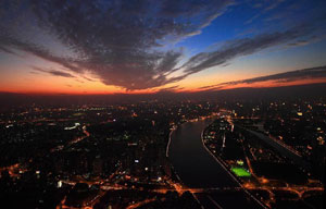 The sunset scenery is seen over Guangzhou, capital of south China's Guangdong province, on Oct 31, 2012.