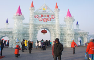 Harbin Ice and Snow Happy Valley is one of the major scenic spots in Harbin during the Harbin international ice and snow festival.