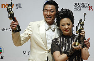 The 31st Hong Kong Film Awards presentation ceremony opens on April 15, 2012. A line of celebrities from the Chinese film industry gather on the red carpet.