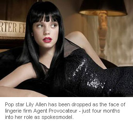 Pop star Lily Allen has been dropped as the face of lingerie firm Agent Provocateur - just four months into her role as spokesmodel.