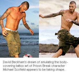 David Beckham's dream of emulating the body-covering tattoo art of Prison Break character Michael Scofield appears to be taking shape.