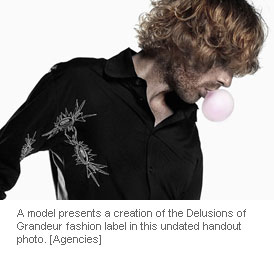 A model presents a creation of the Delusions of Grandeur fashion label in this undated handout photo. [Agencies]
