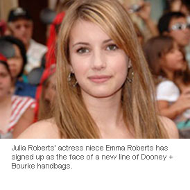 Julia Roberts' actress niece Emma Roberts has signed up as the face of a new line of Dooney + Bourke handbags.