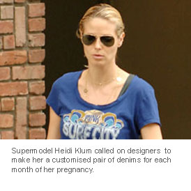 German supermodel Heidi Klum apparently hates the sight of the elastic-waisted maternity jeans so much, that she has now called on designer pal Scott Morrison to make her a customised pair of denims for each month of her pregnancy.