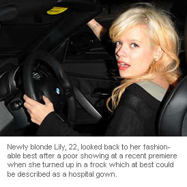 Newly blonde Lily, 22, looked back to her fashionable best after a poor showing at a recent premiere when she turned up in a frock which at best could be described as a hospital gown.