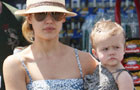 Jessica Alba, carrying Honor in her arms,looks beautiful in her long Spring dress, and hat on the 19th of April 2009.