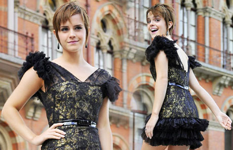 British actress Emma Watson who plays Hermione in the Harry Potter series of films, poses for photographers outside the St Pancras Hotel in London July 6, 2011.