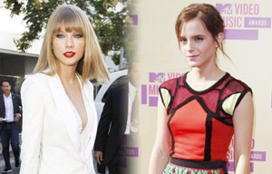 Actress Emma Watson poses with fellow cast members Daniel Radcliffe and Rupert Grint as they arrive for the world premiere of "Harry Potter and the Deathly Hallows: Part 2" at Trafalgar Square in London July 7, 2011.