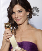 Sandra Bullock poses with her award for best performance by an actress in a motion picture - drama for "The Blind Side" at the 67th annual Golden Globe Awards.