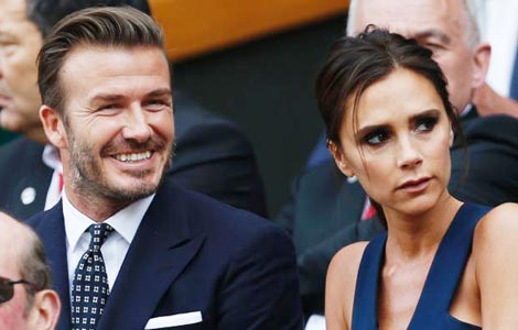 Celebrities watch the men's singles final match between Roger Federer and Novak Djokovic at the 2014 Wimbledon Championships in Wimbledon.