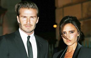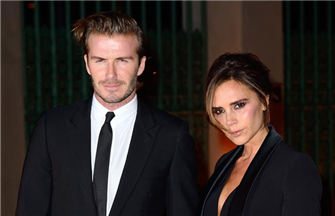 Former soccer player David Beckham and his wife Victoria Beckham arrive for a London Fashion Week event to celebrate the Global Fund in London.