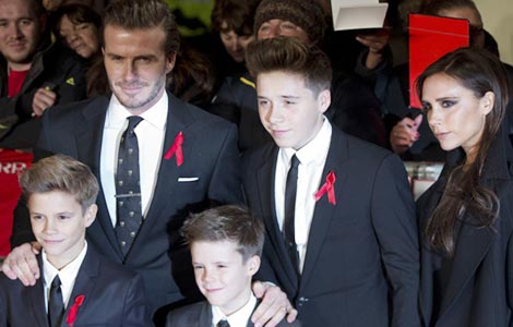 Former England soccer captain David Beckham, his wife Victoria, and their children Brooklyn, Cruz and Romeo attend the world premiere of the film "The Class of 92" in London.