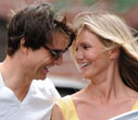 Cameron Diaz and British model Paul Sculfor watch the match between Andy Roddick of the U.S. and Fernando Gonzalez of Chile at the U.S. Open tennis tournament at Flushing Meadows in New York.