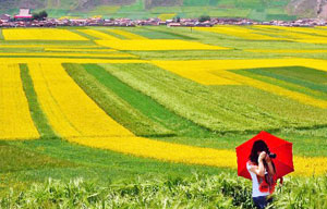 Xining of Qinghai Province is known for its cole plantation and the "golden fields" have become a tourist attraction.