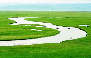 A river runs through a wetland in Gangcha County, northwest China's Qinghai Province, July 20, 2011. Tourist arrivals to Qinghai are picking up as the summer holiday season starts.