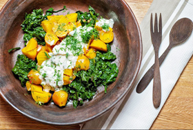 Golden beet and beet-greens salad with yogurt, mint and dill.