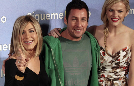 Cast members Jennifer Aniston, Adam Sandler and Brooklyn Decker (L-R) pose to promote their movie "Sigueme el rollo" (Just Go With It) in Madrid February 22, 2011.