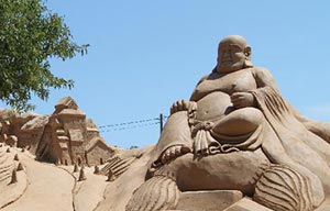 People visit the 10th International Sand Sculpture Festival in Pera, Algarve, Portugal, May 25, 2012.