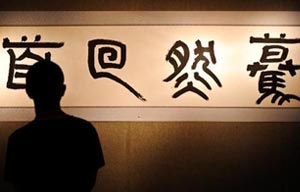Visitors appreciate the calligraphy works created by Chinese calligrapher Deng Chenglong in Changchun.