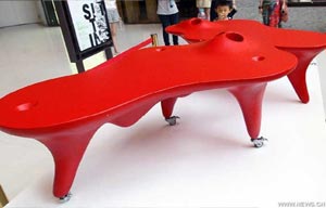 Some creations of a chair designing contest were displayed at Xintiandi in Shanghai on Tuesday to show the designers' understanding on sitting.