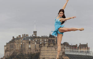 Dancer Jordan Lombardi from Rock the Ballet performs for photographers with Edinburgh Castle in the background during a photocall for their shows at the Fringe Festival in Edinburgh, Scotland August 18, 2011.
