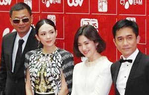 Cast members Tony Leung Chiu-wai and Zhang Ziyi attend a news conference to promote their movie "The Grandmaster", the opening film of the Chinese Film Festival, in Seoul June 16, 2013.