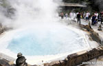 Visitors look at a "boiling pot", or a hot well, in Rehai boiling springs in Tengchong county, southwest China's Yunnan province.