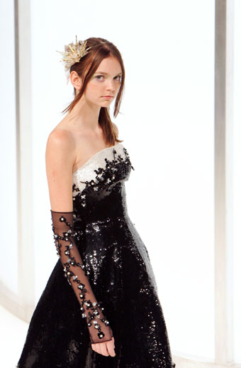 A model presents a creation from Chanel's spring-summer Haute Couture 2006 collection during a fashion show in Hong Kong March 24, 2006. [REUTERS]
