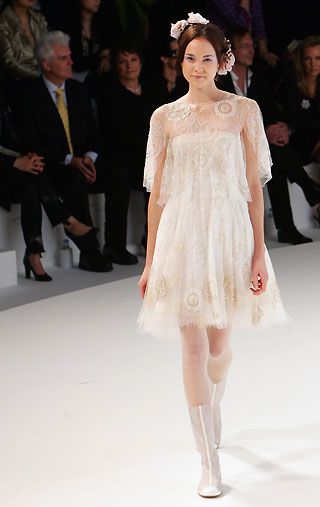 A model presents a creation from Chanel's spring-summer Haute Couture 2006 collection during a fashion show in Hong Kong. [Reuters]