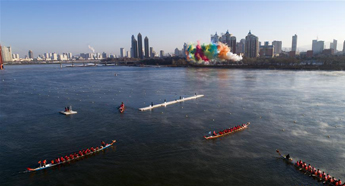Winter dragon boat race held in NE China's Jilin