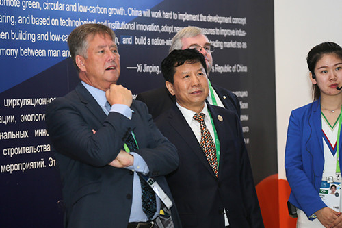 8月7日,中國貿促會副會長陳洲赴2017年阿斯塔納世博會韓國、英國、德國等國家館考察調研,與有關國家館館長就展陳設置、展示理念和新能源開發利用等情況進行交流。