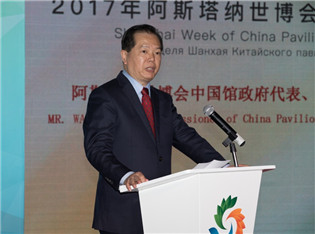 7月14日,阿斯塔納世博會中國館河北活動周正式開幕。中國館政府代表、中國貿促會副會長王錦珍,中國駐哈薩克斯坦大使張漢暉,哈薩克斯坦企業家聯合會副主席多斯克諾夫,河北省人民政府副省長王曉東等出席開幕式并致辭。
