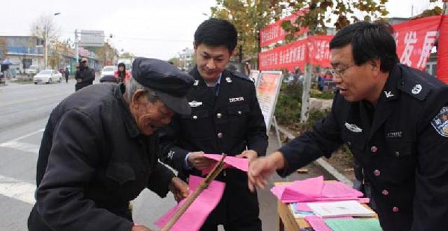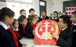 The Taoxu judicial office and local office of calls and letters in Mengyin county, East China’s Shandong province held activities to distribute legal information on Nov 23.