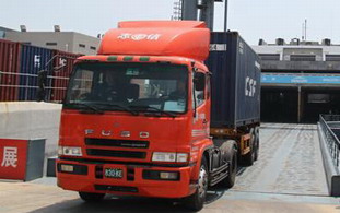 Two trucks from Taiwan hit the road in Pingtan on April 16, following a policy in Fujian province that allows freight vehicles to drive in Pingtan.