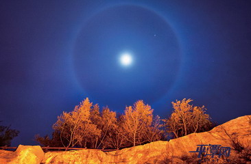 This phenomenon is caused by moonlight refracted from ice crystals in the upper atmosphere.