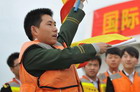 A marine police officer demonstrates flag signals to students from the nautical college of the Quanzhou Normal University on a naval vessel in Quanzhou, Fujian province, March 16, prior to the World Maritime Day which falls on March 17. [Photo/Xinhua]
