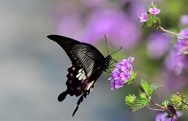 A butterfly rests on flowers at a park in Fuzhou, capital of Southeast China's Fujian province, April 5, 2017.