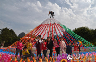 The opening ceremony for the 8th Liu Sanjie Cultural Tourism Festival took place on April 29 in Yizhou, a county-level city of Hechi, Guangxi Zhuang autonomous region, to celebrate the life of the city's most well-known folk singer.